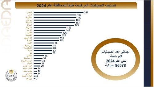 تصنيف الصيدليات المرخصة طبقاً للمحافظة عام ٢٠٢٤