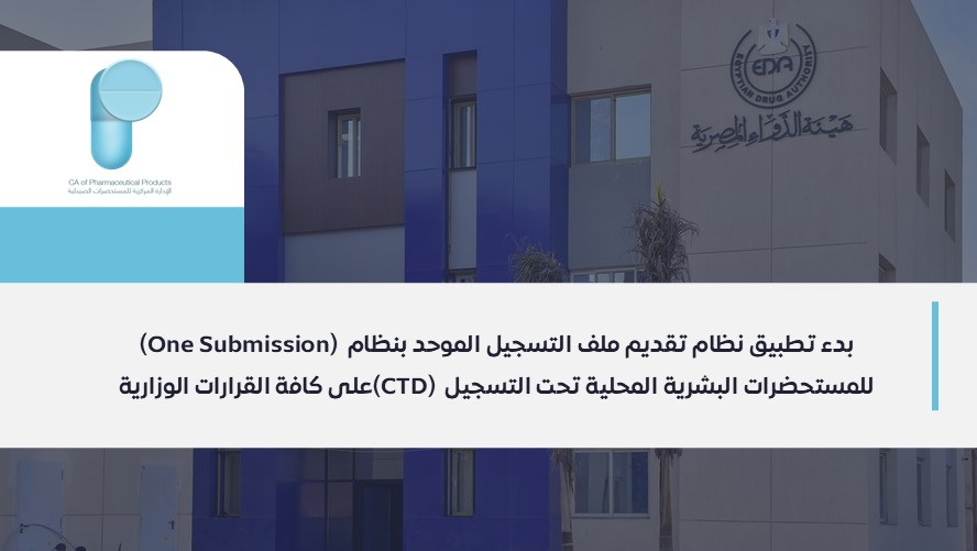 In accordance with the directive issued by the Chairman of the Egyptian Drug Authority (EDA) dated August 13, 2025, the EDA announces the commencement of the unified registration file submission system (One Submission) for locally registered human pharmaceuticals (CTD) across all ministerial decisions, as follows: