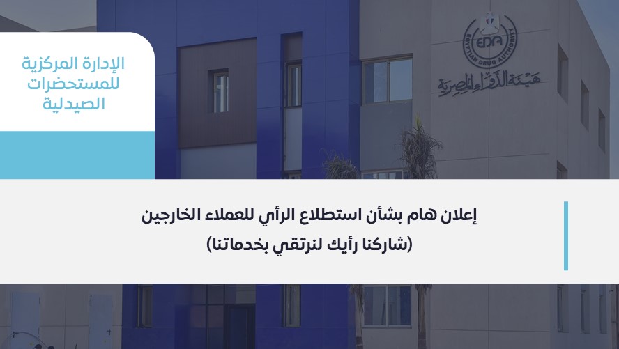 Because your feedback is the foundation of our development, the Egyptian Drug Authority (EDA) is launching an External Customer Satisfaction Survey.