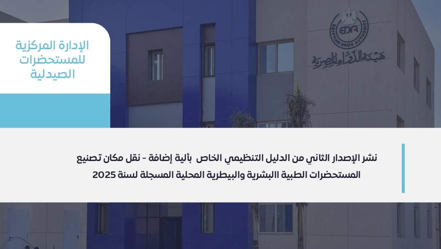 The Egyptian Drug Authority announces the publication of the second edition of the Regulatory Guide on the Mechanism for Adding/Transferring the Manufacturing Site of Locally Registered Human and Veterinary Medicinal Products for the Year 2025.