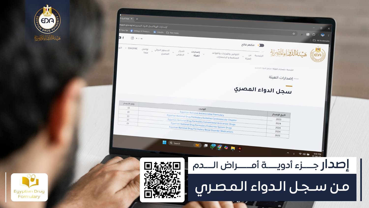 The Egyptian Drug Authority (EDA) has announced the release of a new section of the Egyptian Drug Formulary dedicated to Blood disorder medications. This section includes a wealth of information targeted at healthcare professionals, focusing on key drugs registered in the Egyptian market for the treatment of blood disorders, particularly anemia medications, anticoagulants, blood thinners, and treatments for hemophilia.
