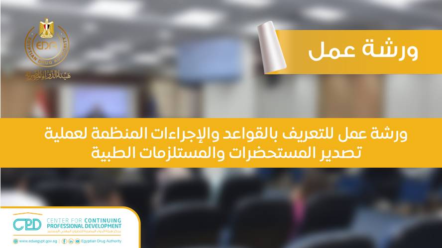 تعلن هيئة الدواء المصرية عن فتح باب التسجيل بورشة عمل للتعريف بالقواعد والإجراءات المنظمة لعملية تصدير المستحضرات والمستلزمات الطبية.