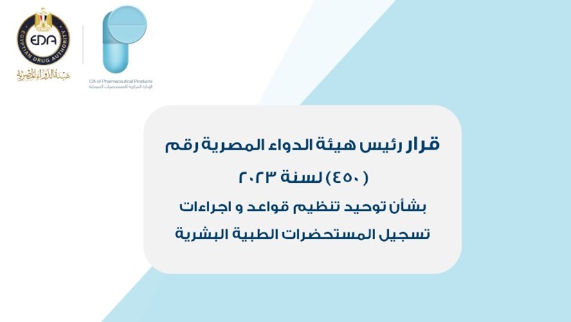 قرار رئيس هيئة الدواء المصرية رقم ( 450) لسنة 2023 بشأن توحيد تنظيم قواعد و اجراءات تسجيل المستحضرات الطبية البشرية