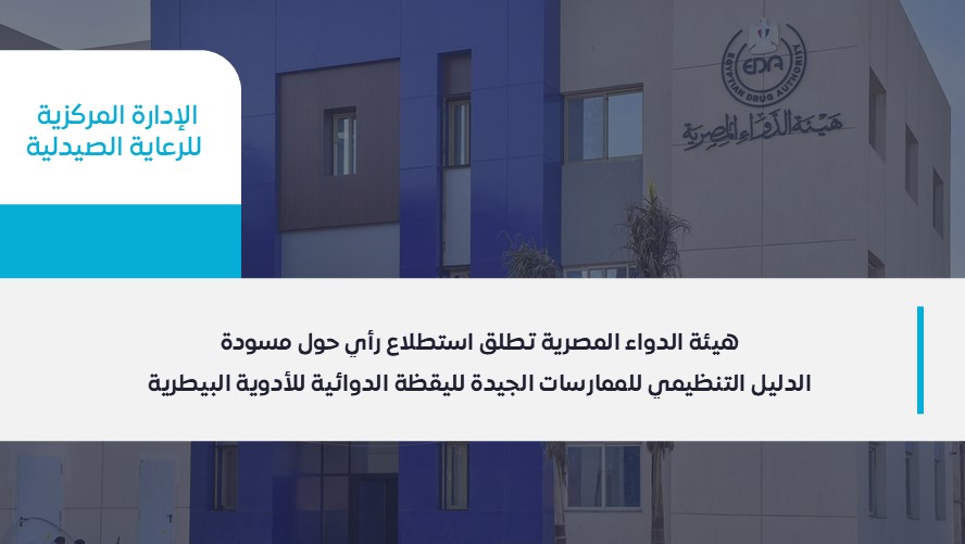 The Egyptian Drug Authority (EDA) announces the opening of a public consultation on the Draft Guideline for Veterinary Medicine Pharmacovigilance Practices in Egypt, as part of its commitment to developing the regulatory system and enhancing good practices in the field of veterinary pharmacovigilance.